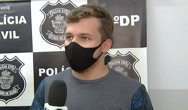 Frank Dias Diogo se apresentou espontaneamente no 20º DP, em Goiânia - (Foto Reprodução TV Anhanguera)