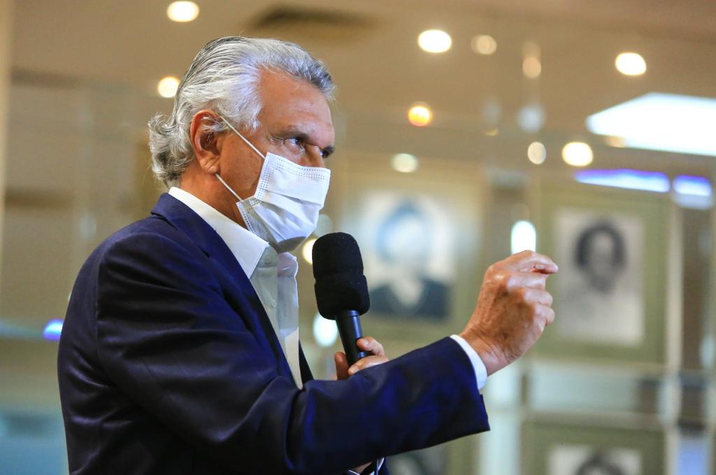 Ronaldo Caiado durante entrevista a veículos de comunicação: “Goiás nunca faltou com quem quer que seja, mas, ao mesmo tempo, precisamos de reciprocidade para trabalhar em benefício da população brasileira, não só do Estado” - (Foto: Wesley Costa)