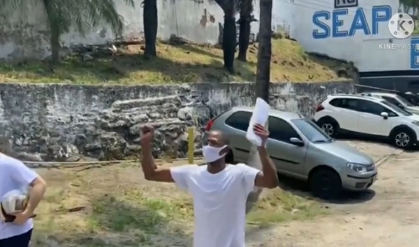 Vando foi recebido com emoção pela família na porta do presídio, na Zona Norte do Rio.