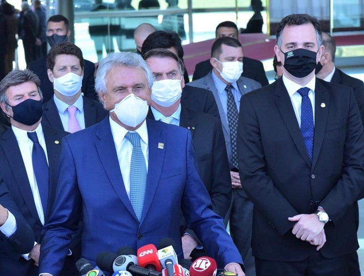 O governador Ronaldo Caiado (DEM) se reuniu nesta quarta-feira (24) no Palácio da Alvorada, em Brasília, com o presidente Jair Bolsonaro (Sem Partido) e representantes de poderes. Durante o encontro, ficou definida a criação de um comitê de coordenação nacional para o enfrentamento da pandemia de Covid-19 no Brasil.