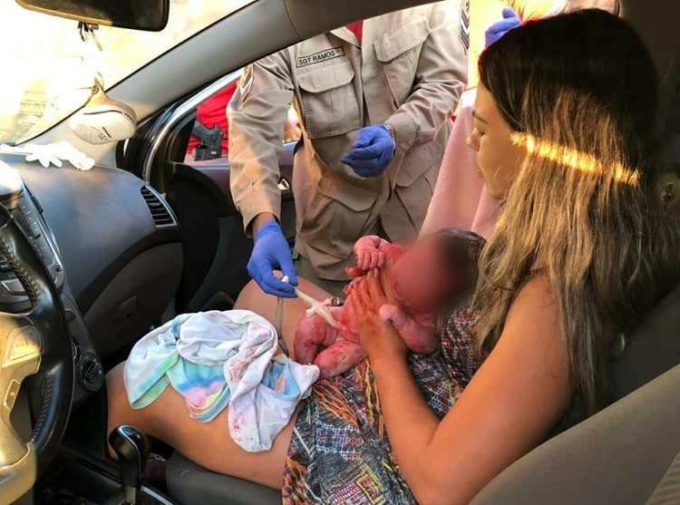 Após o parto, tanto a mãe quanto o bebê, que é menina, foram transportados para uma unidade de saúde para receberem apoio médico.