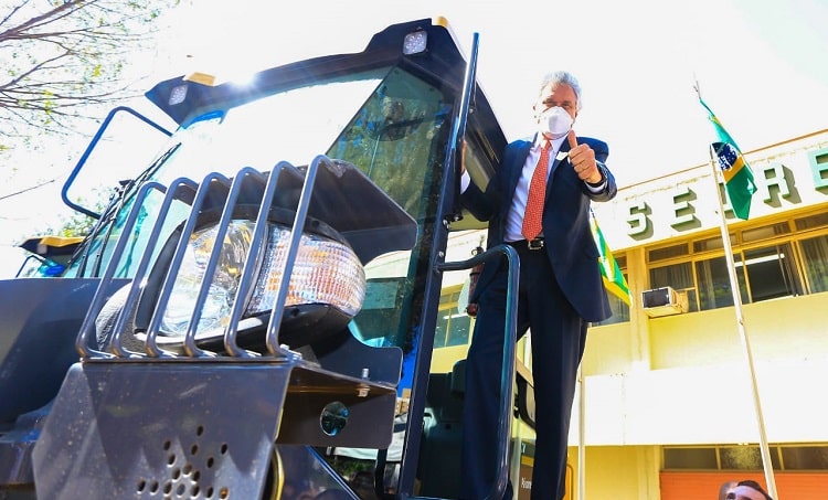 O governador Ronaldo Caiado (DEM) entregou, nesta quarta-feira (01), em solenidade na sede da Secretaria de Estado de Agricultura, Pecuária e Abastecimento (Seapa), 45 pás-carregadeiras do Mecaniza Campo. O programa do Governo de Goiás visa melhoria da infraestrutura dos municípios, com a recuperação da malha viária, especialmente em estradas vicinais.
