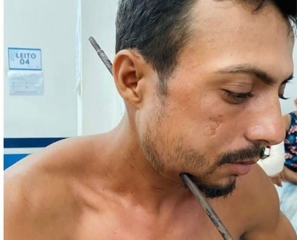A barra de metal atingiu o pescoço de Aldinailson Pereira, de 29 anos, e por pouco não destruiu a artéria carótida. Ele foi levado para o Hospital Municipal de Santarém, onde passou por cirurgia na última terça-feira (21) para a retirada do objeto.