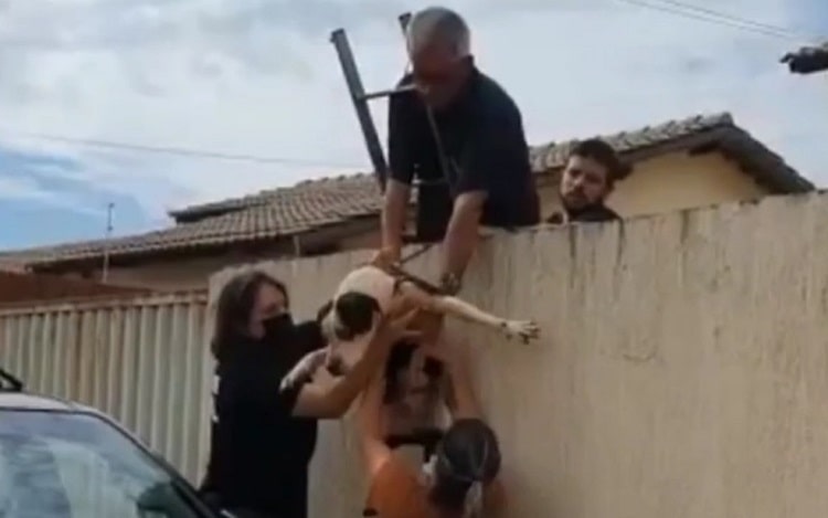 Agentes pularam o muro da residência para salvar o animal
