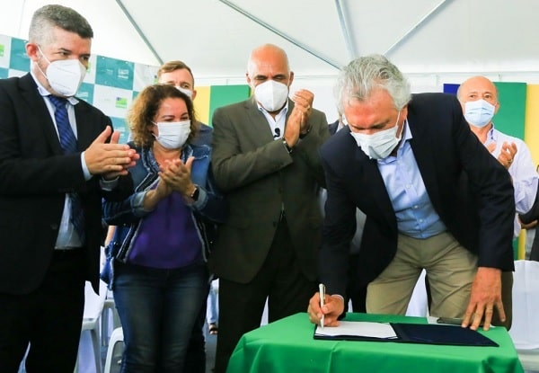O governador Ronaldo Caiado assinou, nesta segunda-feira (14), ordem de serviço para a construção de um colégio padrão século XXI no Residencial Jardins do Cerrado 9, em Goiânia. A escola terá capacidade de atender 1.296 alunos da região em três turnos e será estruturada com 12 salas de aula, seis banheiros, dois laboratórios, bloco administrativo, biblioteca, cozinha, refeitório e estacionamento. O investimento do Governo do Estado é de R$ 6,5 milhões.