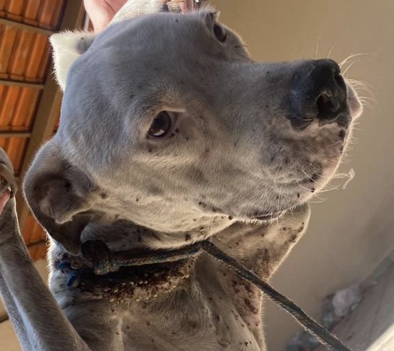 A Polícia Civil foi até um imóvel na última quinta-feira (21), localizado no Jardim Europa, em Goiânia, para averiguar uma denúncia anônima de maus-tratos contra animais. No local foi localizado um cão, aparentemente da raça pitbull, muito magro, e debilitado, infestado de carrapatos, com a gengiva branca, sinais de anemia.