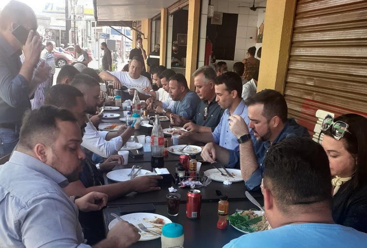 Acompanhado por correligionários, Mendanha conversou com comerciantes e almoçou em um restaurante local.
