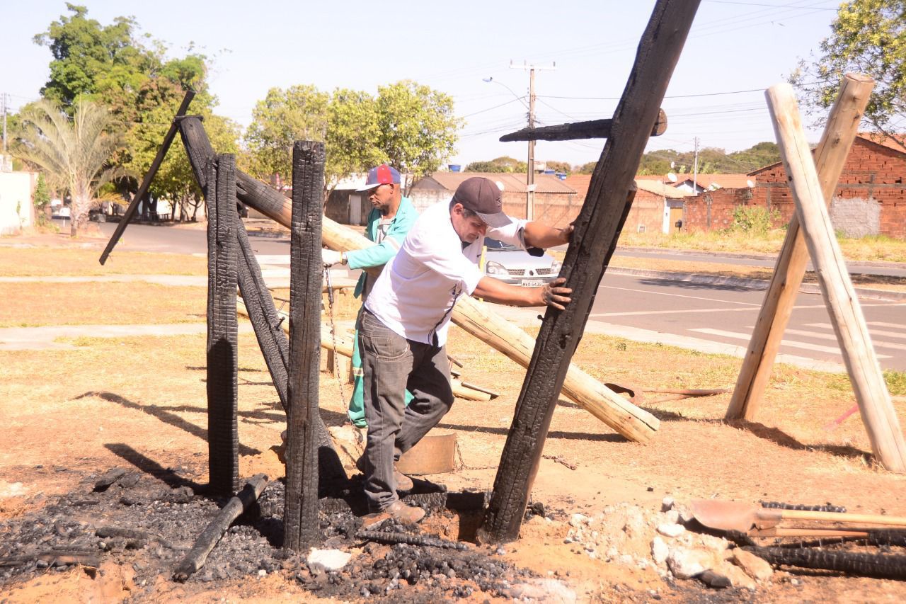 A Praça Marlucia Terezinha de Jesus Silva, situada no Jardim Tropical, em Aparecida de Goiânia, foi alvo de vândalos nesse final de semana. Durante a ação de vandalismo, o playground da praça foi queimado.