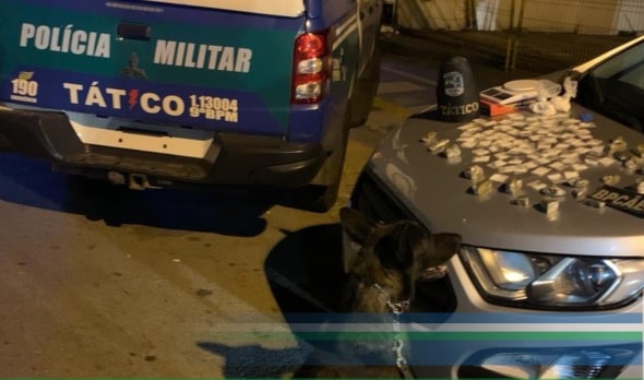Equipe do BPCÃES Comando da Polícia Militar de Goiás (PMGO) se deslocou na noite deste domingo (13) em apoio de faro às equipes do 9º BPM, no Setor Jardim Petrópolis, em Goiânia. Na abordagem a um veículo suspeito, foram encontradas porções de maconha, cocaína e ecstasy.