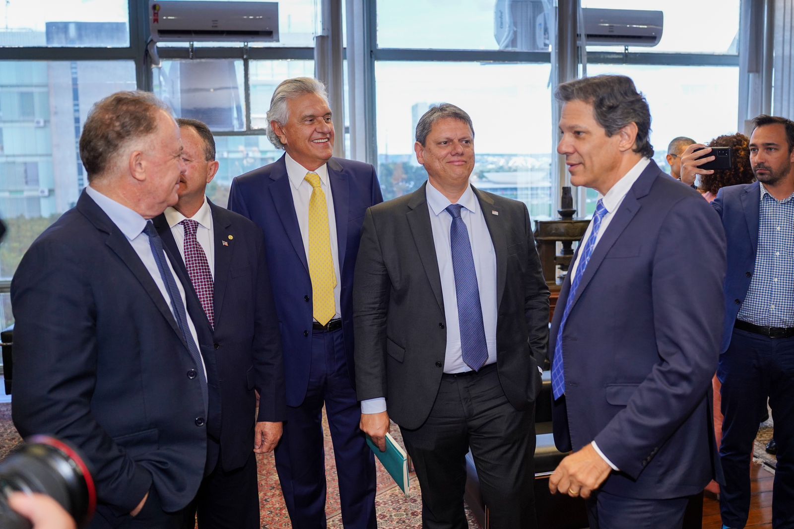 O governador Ronaldo Caiado (UB) junto a sete governadores que integram o Fórum de Governadores deram continuidade, nesta terça-feira (07), às discussões sobre formas de repor as perdas de arrecadação com o ICMS. Na agenda, os governadores se reuniram com o ministro da Fazenda, Fernando Haddad, e com os ministros do Supremo Tribunal Federal (STF) Luís Roberto Barroso e Gilmar Mendes, em Brasília. Governantes esperam se encontrar com outros ministros nesta quarta-feira (08).