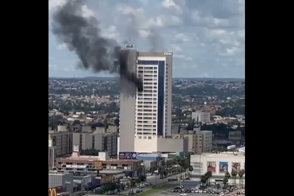 Um incêndio foi registrado neste sábado (25) em um prédio comercial situado em Aparecida de Goiânia, em frente ao Buriti Shopping.