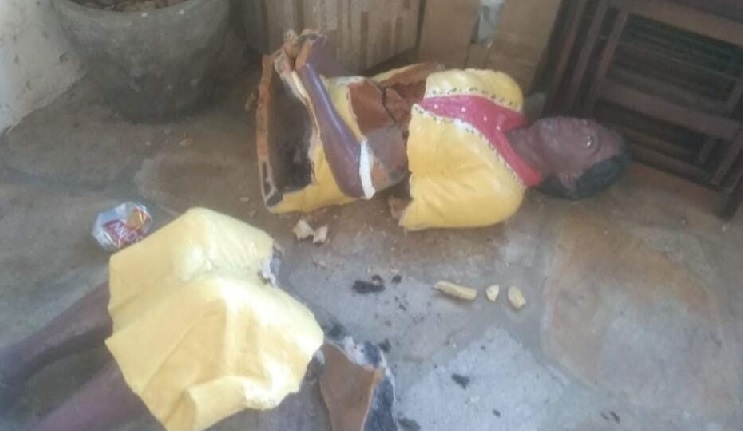 Estátua de Leodegária de Jesus destruída em Goiás – (Foto: Reprodução)