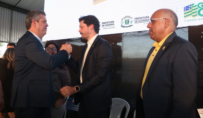 Nesta quarta-feira (17), o ministro-chefe da Secretaria-Geral da Presidência da República, Márcio Macedo, o vice-governador de Goiás, Daniel Vilela (MDB) e o prefeito de Goiânia, Rogério Cruz (Republicanos), lançaram a “Caravana Juventude pela Paz nas Escolas”, evento realizado na Escola Municipal Dom Tomás Balduíno, em Goiânia.
