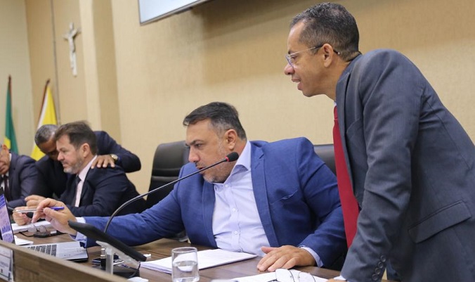 André Fortaleza e Isaac Martins durante a sessão ordinária desta terça-feira (1º) - (Foto: Marcelo Silva)