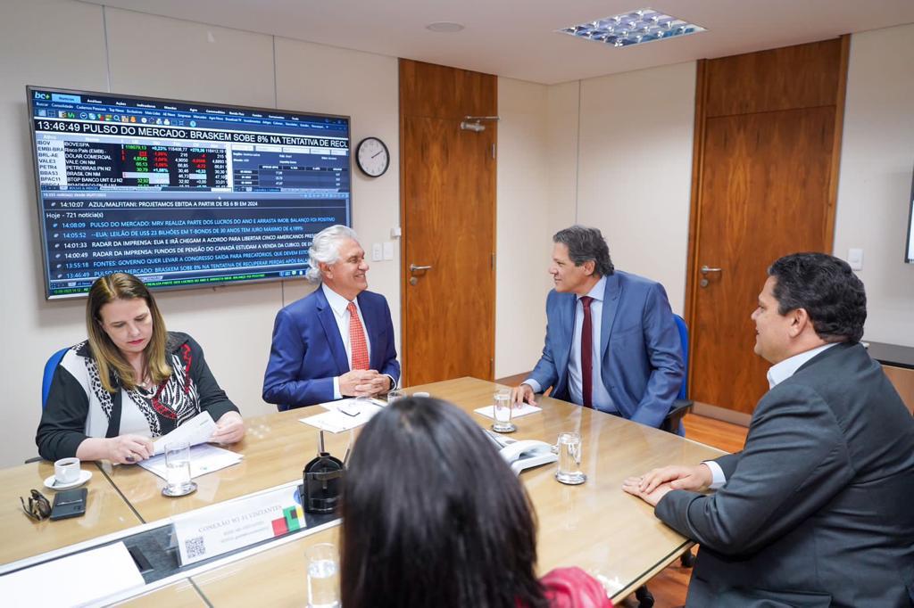Após a divulgação do primeiro posicionamento da STN recomendando a exclusão de Goiás do RRF, o governador Ronaldo Caiado e a secretária da Economia, Selene Peres Peres Nunes, se reuniram com o ministro da Fazenda, Fernando Haddad, e gestores do Tesouro Nacional, em Brasília, para apresentar o cenário das contas do Estado.