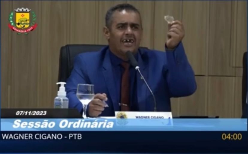 Nesta terça-feira (07), o vereador Wagner Cigano (PTB) agiu de maneira inusitada durante a sessão ordinária da Câmara Municipal de Goianésia. O parlamentar retirou a prótese dentária durante discurso em agradecimento a ação de uma colega, que havia solicitado novos equipamentos para as unidades de atendimento odontológico do município.