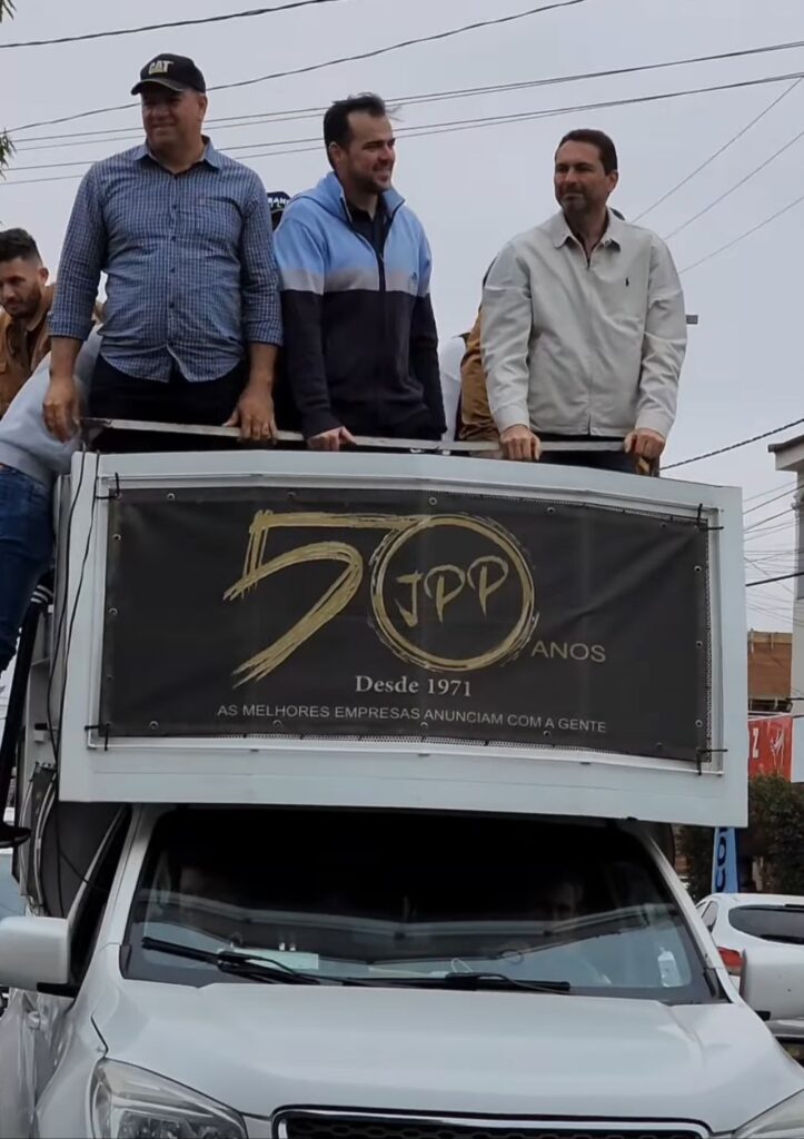 O candidato a prefeito de Aparecida de Goiânia pelo MDB, Leandro Vilela percorreu as principais avenidas da região do Garavelo e Jardim Tiradentes em cima de carro de som. O candidato estava acompanhado de Gustavo Mendanha (MDB) e da sua esposa, Mayara Mendanha (PL), além de candidatos a vereador.