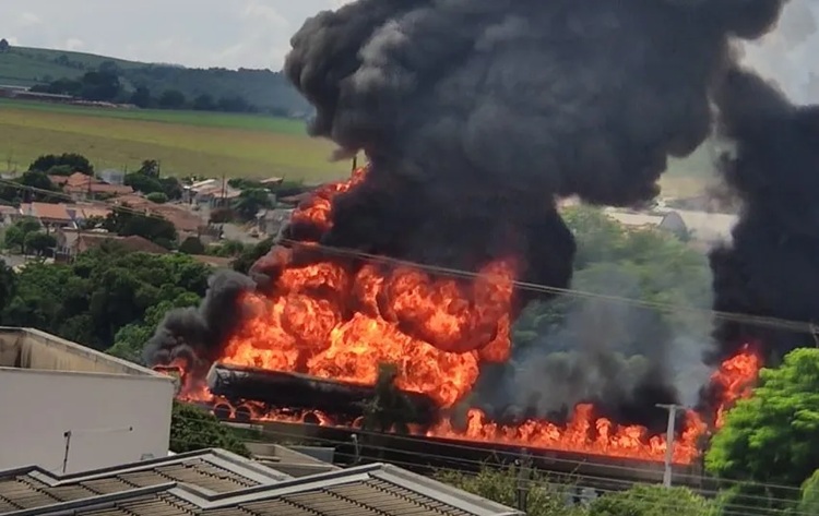 Um caminhão tanque explodiu após bater em um caminhão caçamba na PR-092, em Arapoti (PR). O acidente ocorreu em um viaduto localizado no perímetro urbano da cidade. Um dos motoristas envolvidos foi socorrido com ferimentos moderados e o outro teve ferimentos leves.