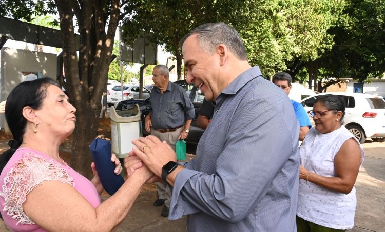 Prefeito Sandro Mabel cumprimenta moradora durante mutirão no Setor Santa Rita - (Foto Alex Malheiros/Secom Goiânia)