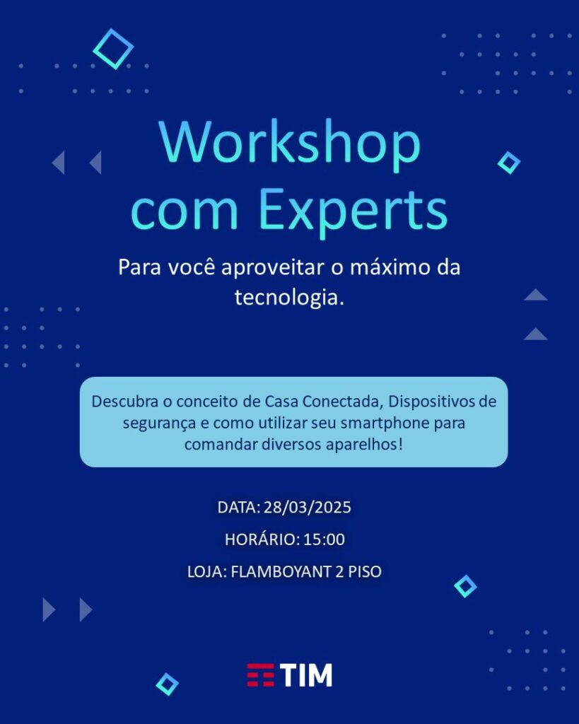 A TIM promove o Workshop com Experts toda sexta-feira, às 15h, no 2º piso do Shopping Flamboyant.