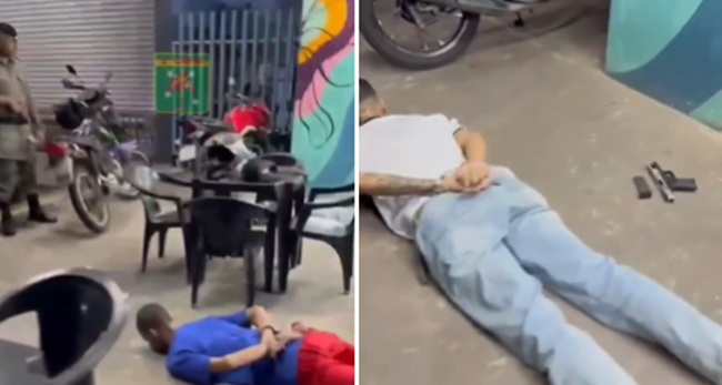 Os dois foram abordados por volta das 21h em uma arena de esportes localizada na Avenida Argélia, após um adolescente informar aos policiais militares que estaria sendo ameaçado pela dupla.