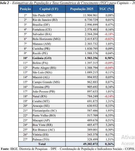 Estimativa da população brasileira divulgada na quarta-feira (28/8) pelo Instituto Brasileiro de Geografia e Estatística (IBGE) aponta que, das 27 capitais brasileiras, Aparecida de Goiânia tem mais habitantes do que 6 delas.