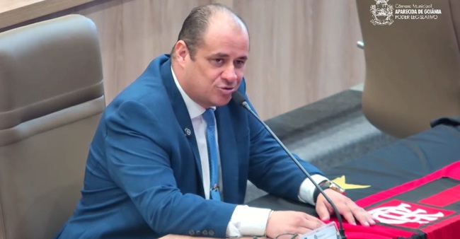 O vereador Neto Gomes (Mobiliza) levou uma bandeira do Flamengo para a sessão ordinária desta quinta-feira (4/12) da Câmara Municipal de Aparecida de Goiânia. Em sua fala, o vereador fez menção aos títulos da Libertadores e do Campeonato Brasileiro vencidos pelo time carioca e ainda parabenizou a “nação rubro-negra”.