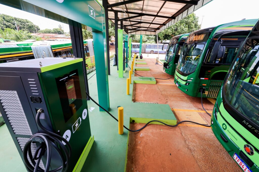 O governador Ronaldo Caiado (UB) inaugurou, nesta sexta-feira (30/1), a reforma do Terminal Praça A. Também entregou 21 ônibus elétricos e a maior estação de recarga do Brasil. “Não tem nada semelhante ao que é oferecido hoje à nossa população. São os ônibus mais modernos do mundo”, destacou o chefe do Executivo.