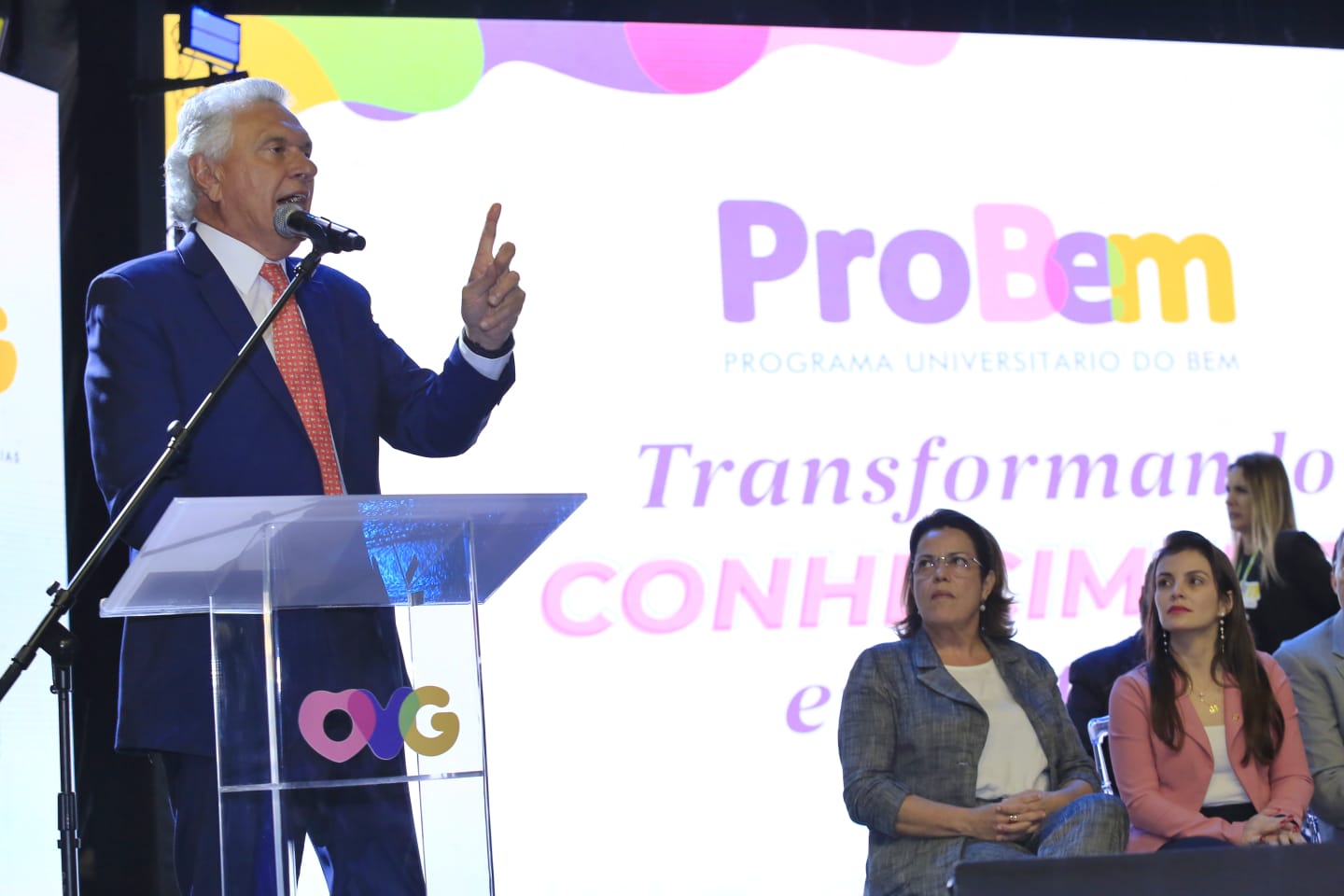 Em solenidade realizada na noite desta quinta-feira (02), em Goiânia, o governador Ronaldo Caiado (UB) deu boas-vindas aos 5 mil estudantes goianos que passam a ser atendidos, neste semestre, pelo Programa Universitário do Bem (ProBem), da Organização das Voluntárias de Goiás (OVG). Eles assinaram o termo de adesão, que garante o repasse da bolsa de estudos a partir deste mês, inclusive com crédito retroativo referente à matrícula.